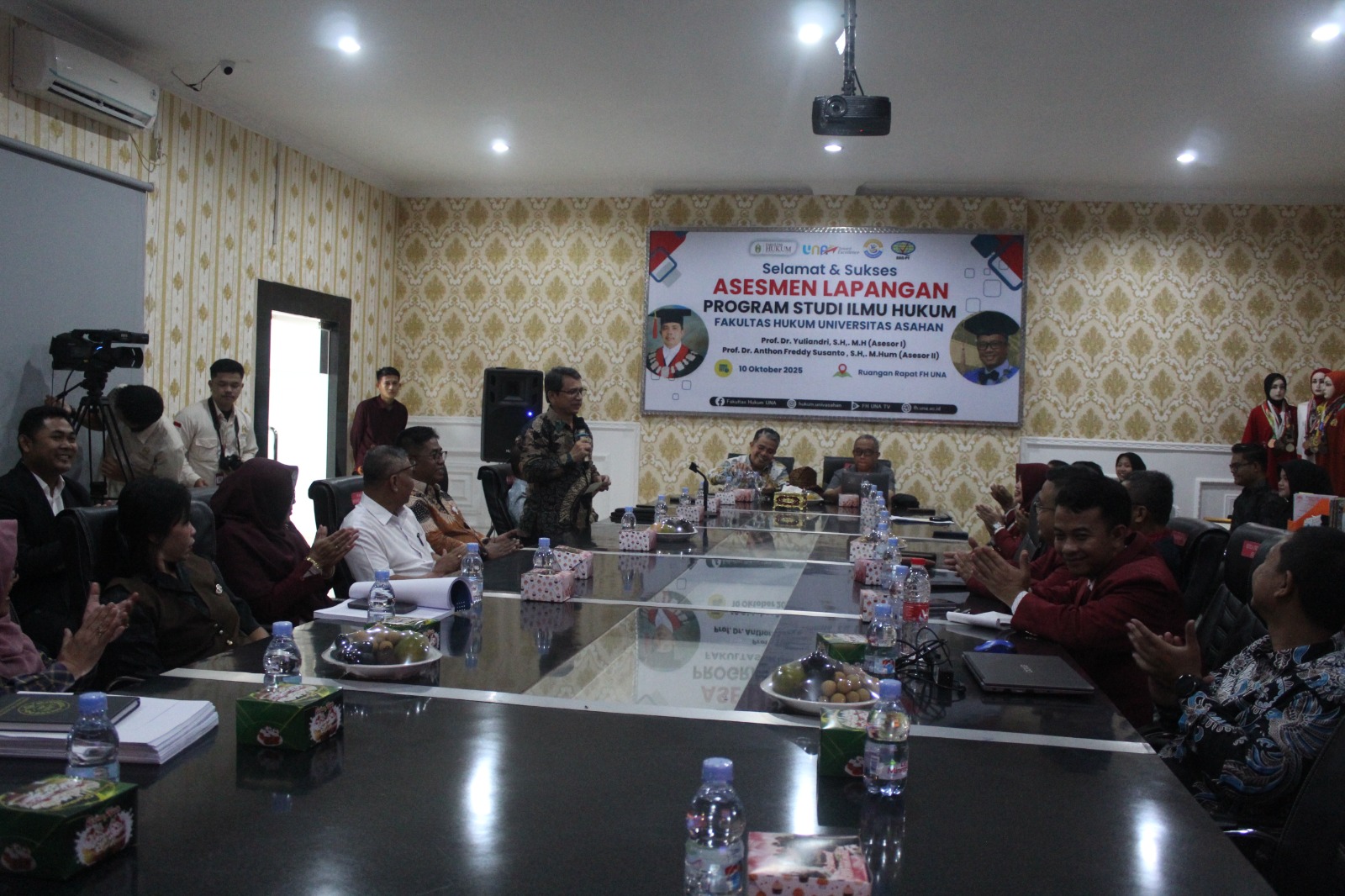 Tim Asesor BAN-PT yang hadir kali ini terdiri dari Prof. Dr. Yuliandri, S.H., M.H. (Universitas Andalas), dan Prof. Dr. Anthon Freddy Susanto, S.H., M.Hum (Universitas Pasundan). Selain itu, kegiatan ini juga dihadiri oleh para pimpinan universitas dan stakeholder penting, antara lain Ketua Pembina Yayasan UNA Ir. Syarifullah Harahap, M.Si, Ketua Pengurus Yayasan UNA Drs. Mapilindo, M.Pd, Rektor UNA Assoc. Prof. Dr. Mangaraja Manurung, S.H., M.H, Kajari Kabupaten Asahan Basril G, S.H., M.H, serta jajaran Wakil Rektor, Dekan, Ketua dan Sekretaris Lembaga dan penjamin mutu.