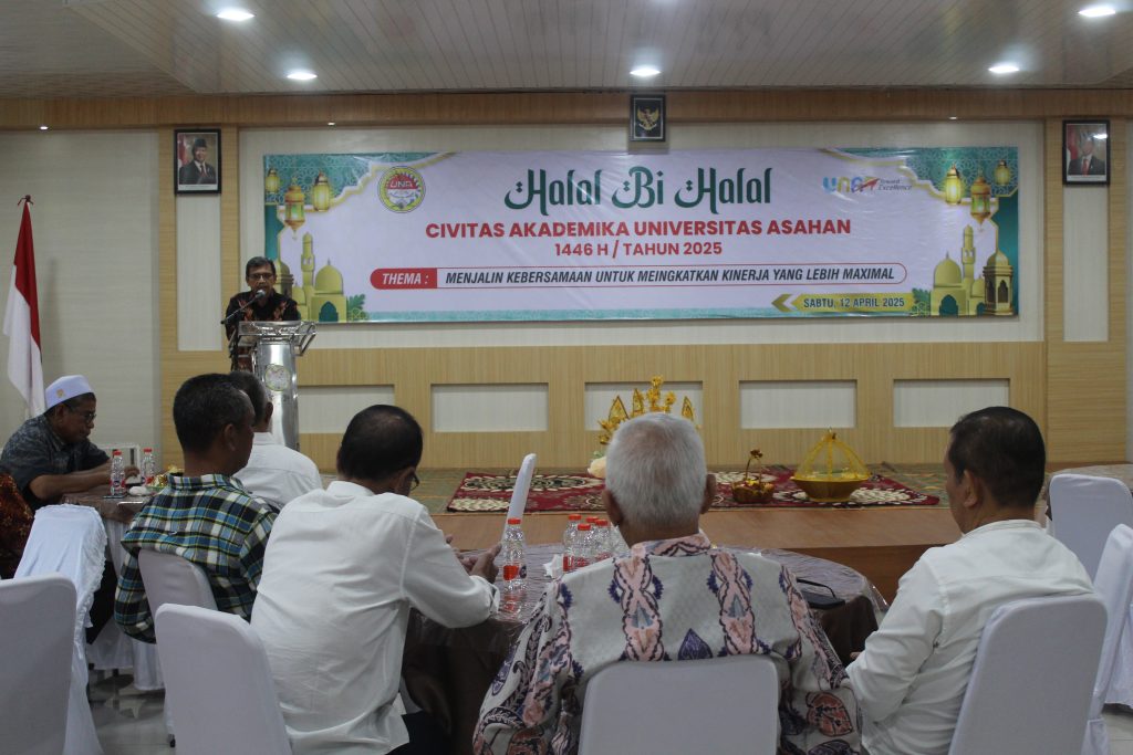 KISARAN-Dalam semangat kebersamaan dan nilai-nilai kekeluargaan, Universitas Asahan (UNA) menggelar acara Halal Bihalal Idulfitri 1446 H yang dirangkaikan dengan prosesi tepung tawar untuk dua dosen yang akan menunaikan ibadah haji tahun ini. Kegiatan ini berlangsung khidmat di Gedung Zulfirman Siregar, Kampus UNA, pada Sabtu, 12 April 2025. Dengan mengangkat tema “Menjalin Kebersamaan untuk Meningkatkan Kinerja yang Maksimal”,